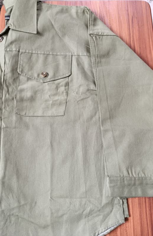 کت کتان سبز ارتشی زنانه دوجیب آستین دکمه برند پوشینه
